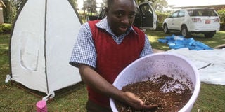 Icipe's Chrysantus Mbi Tanga: The insects are usually grinded and mixed with animal feed to serve as a source of protein supplement, saving the farmer from buying expensive ingredients. PHOTO | JOSEPH KANYI | NMG