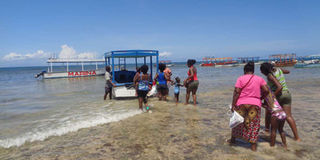 Merry makers go for a boat ride at Malindi National Park in Kilifi County on April 17, 2017. Hoteliers say they will have to spend more to source meat from Nairobi. FILE PHOTO | NMG