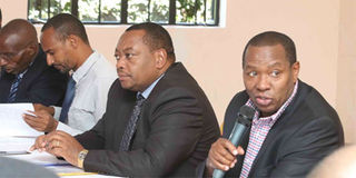 Laikipia Governor Ndiritu Muriithi (right) with county officials during a development meeting. FILE PHOTO | NMG
