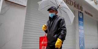 A man wears a face mask in a deserted shopping street in Jiujiang, Jiangxi province in China on February 2, 2020, as the country is hit by an outbreak of the novel coronavirus. PHOTO | REUTERS