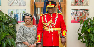 President Uhuru Kenyatta and First Lady Margaret Kenyatta at State House, Nairobi as they prepared to leave for the 55th Jamhuri Day celebrations at Nyayo Stadium. PHOTO | SAMUEL MIRING'U | PSCU